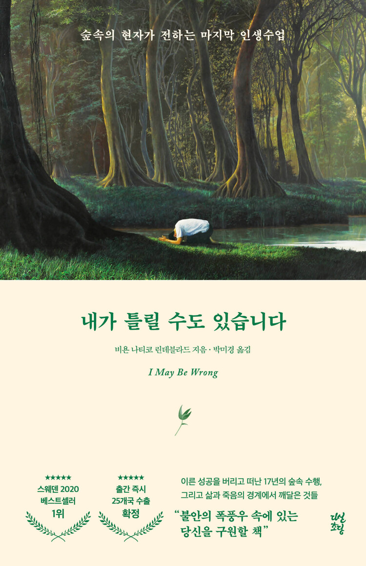 2022년 1월, 한 사람이 세상을 떠났다. ‘망설임도, 두려움도 없이 떠납니다’라는 한마디를 남기고. 거대한 애도의 물결이 스웨덴을 휩쓸었다. 비욘 나티코 린데블라드. 수많은 스웨덴인들을 불안에서 끌어내어 평화와 고요로 이끌었던 그는 2018년 루게릭병에 진단받은 후에도 유쾌하고 따뜻한 지혜를 전했다. 『내가 틀릴 수도 있습니다』는 20대에 눈부신 사회적 성공을 거뒀지만 모든 것을 버리고 숲속으로 17년간 수행을 떠났던 저자의 여정과 깨달음, 그리고 마지막을 담은 책으로 수많은 독자들에게 삶의 의미와 희망을 되찾게 했다. ★ 스웨덴 베스트셀러 1위★ ★ 출간 즉시 25개국 수출★ ★ 스웨덴 30만 부 판매★ ★ 달라이라마, 도종환 추천사★